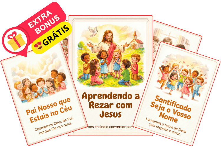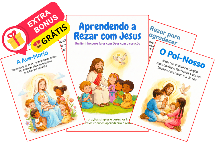 Um livrinho infantil que ensina as crianças a rezar o Pai-Nosso com Jesus, usando palavras simples, imagens encantadoras e muito amor.