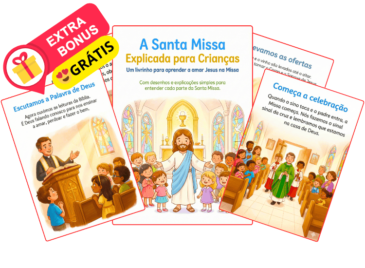 Um livrinho infantil que explica cada parte da Santa Missa com palavras simples, imagens encantadoras e muito amor por Jesus.